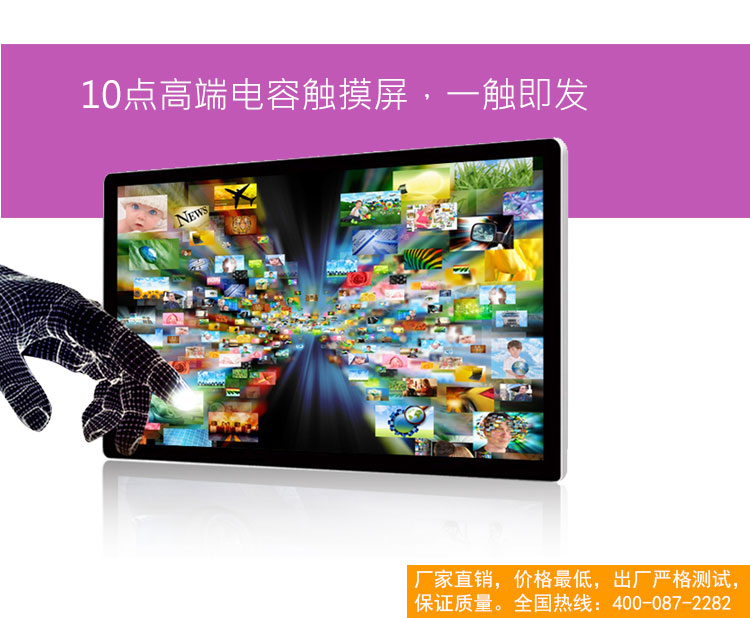 e) 主要用途基本不会变化:企业会议、商品展示、教育教学、政务查询、广告展示等等,值得一提的是电容屏更灵敏的特性让许多商家采购用作游戏吸引,收到的效果比以前任何的产品都要好。 上一篇42寸壁挂电容触摸一体机下一篇47寸壁挂电容触摸广告机 |